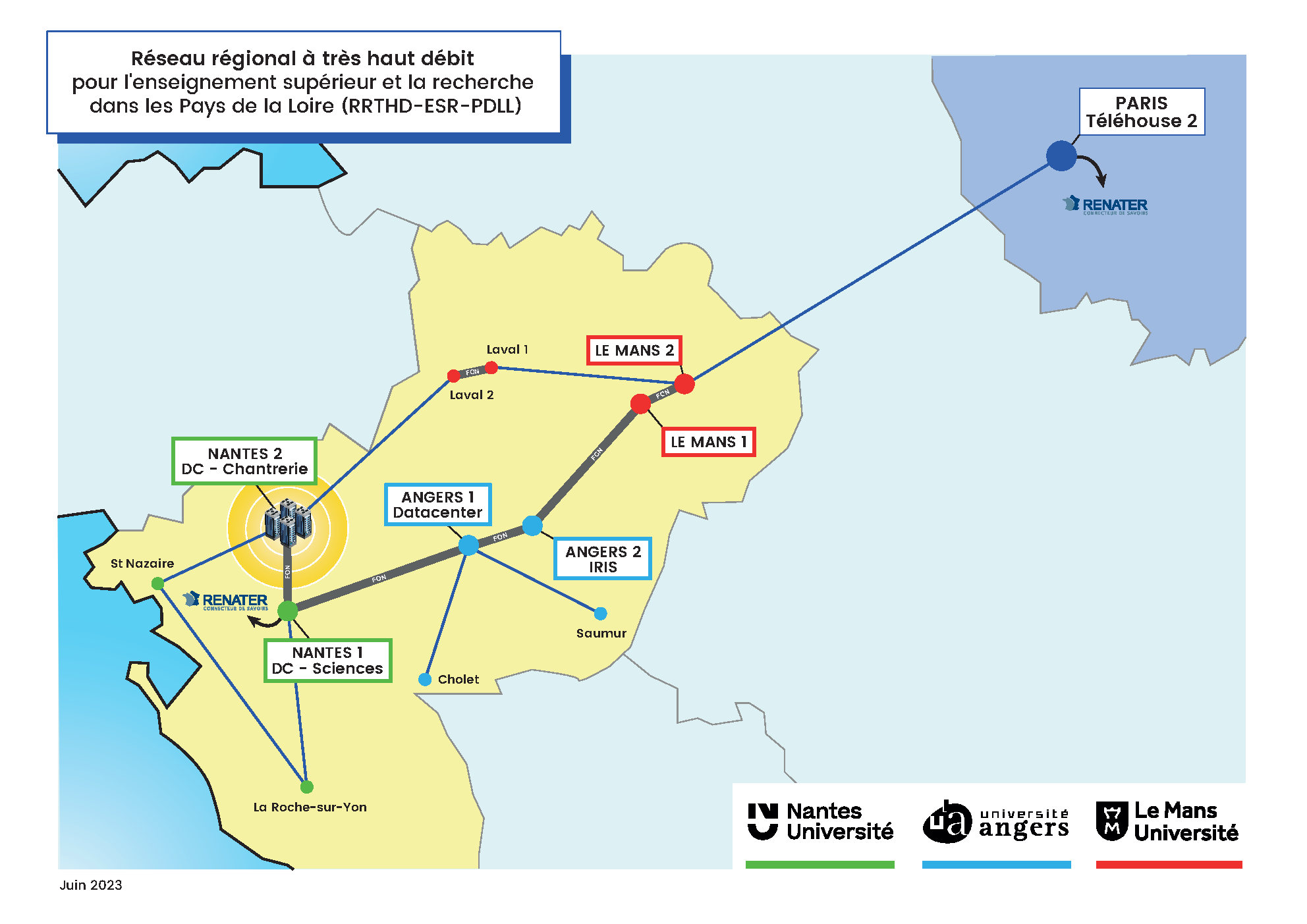 - Le raccordement au réseau national Renater via les NR de Nantes ou Paris TH2: le RRTHD est Réseau d’accès Régional pour RENATER.